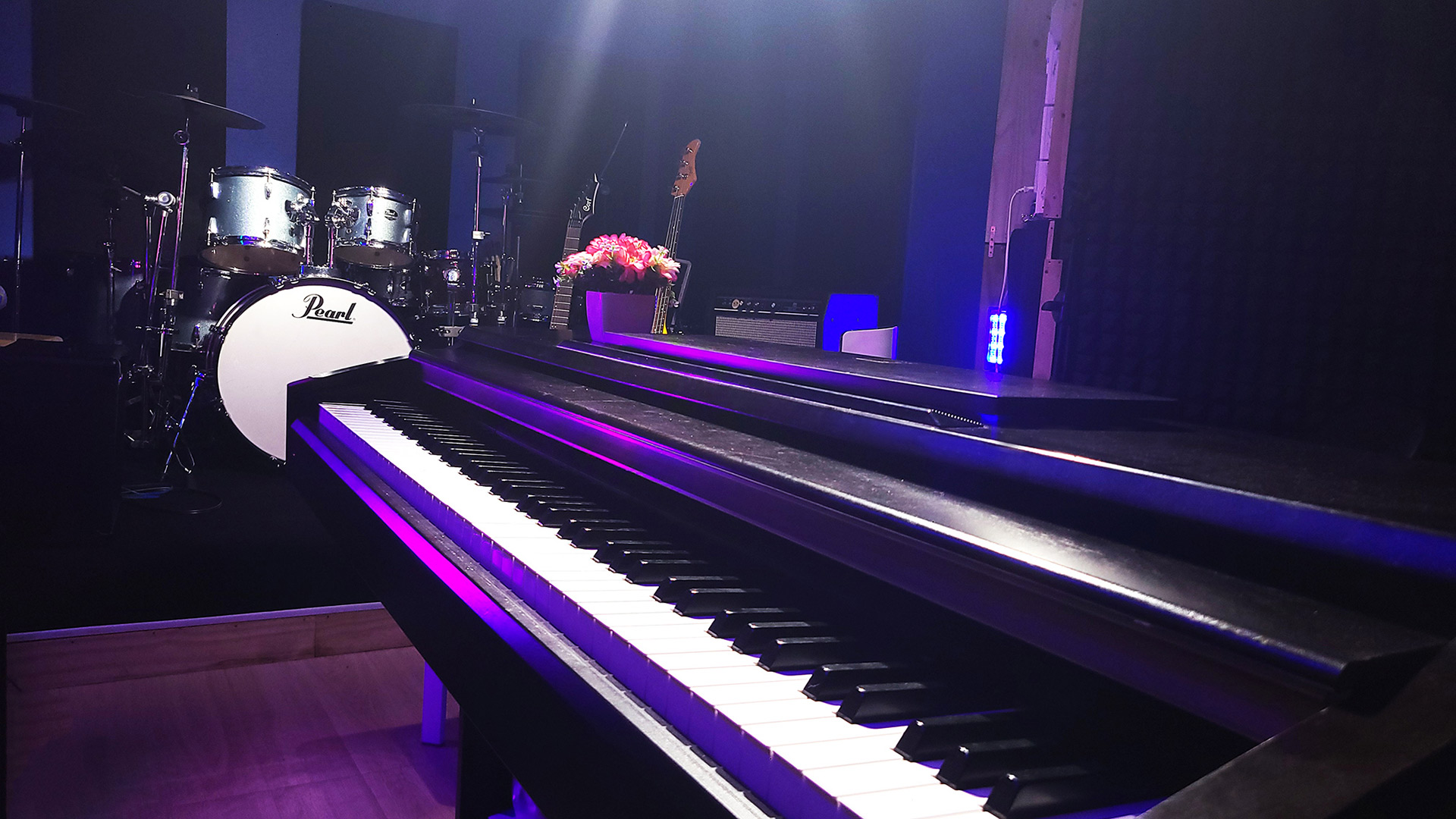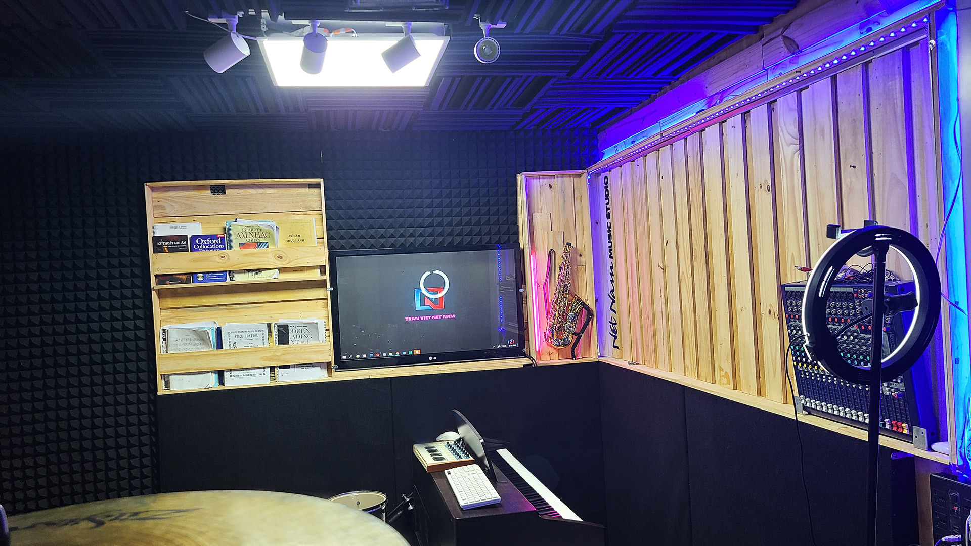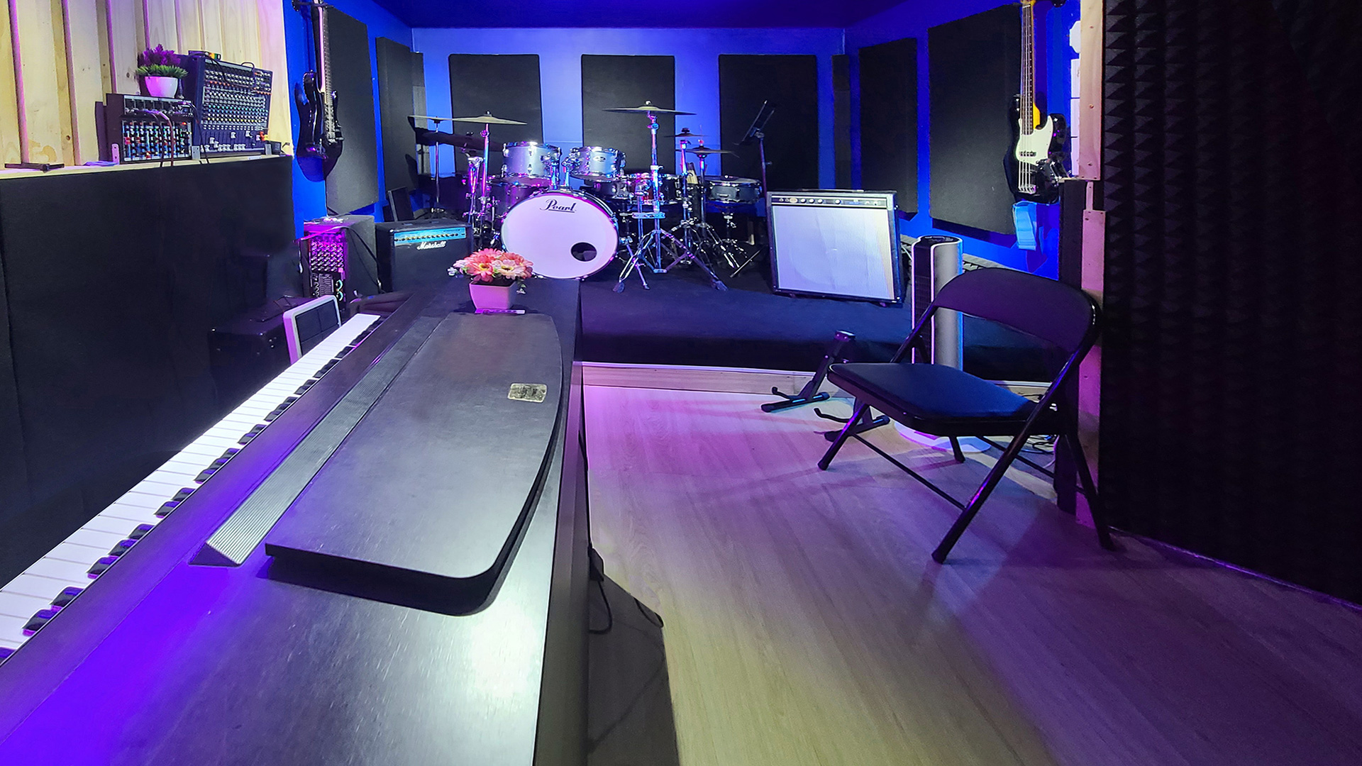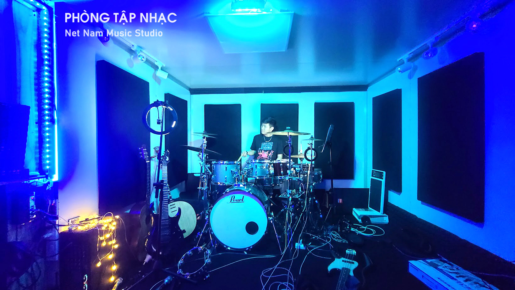 Phòng tập được cách âm tốt và trang bị đầy đủ các nhạc cụ cần thiết để phục vụ cho band nhạc tập luyện.